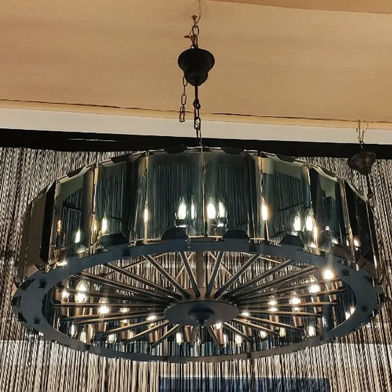 •Tuotteen materiaali: Rungon materiaali on mustaksi maalattua metalliprofiilia (staattinen maalaus), ja kattokruunun ympärillä olevat lasit ovat savunharmaat